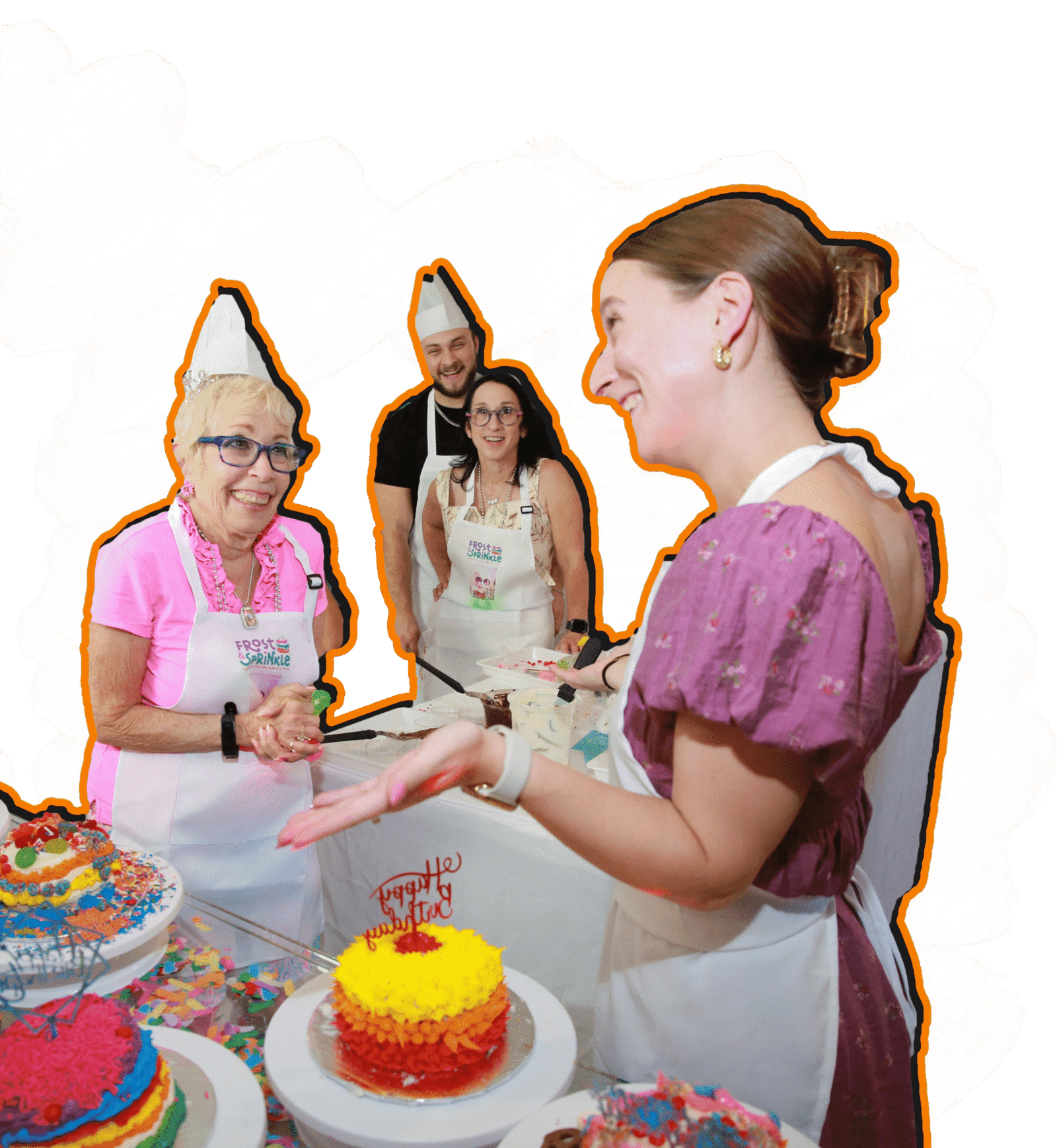 Frost & Sprinkle™ private cake decorating parties are designed to fit any celebration — bachelorette parties, anniversaries, friends’ night out, clubhouse/HOA events, country club gatherings, charity fundraisers, bridal showers, baby showers, birthday parties. Whether it’s an intimate milestone or a lively group event, we bring the same all-inclusive, high-energy format to make it unforgettable.